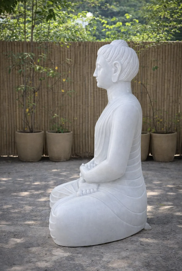 Gautam Buddha Statue that is hand-carved and is completely one of a kind, you will receive this exact statue in your order. Our marble statues are hand-carved and created as per the customer’s requirements and we also offer customization in size and design. You can also choose your design and send us for customization.